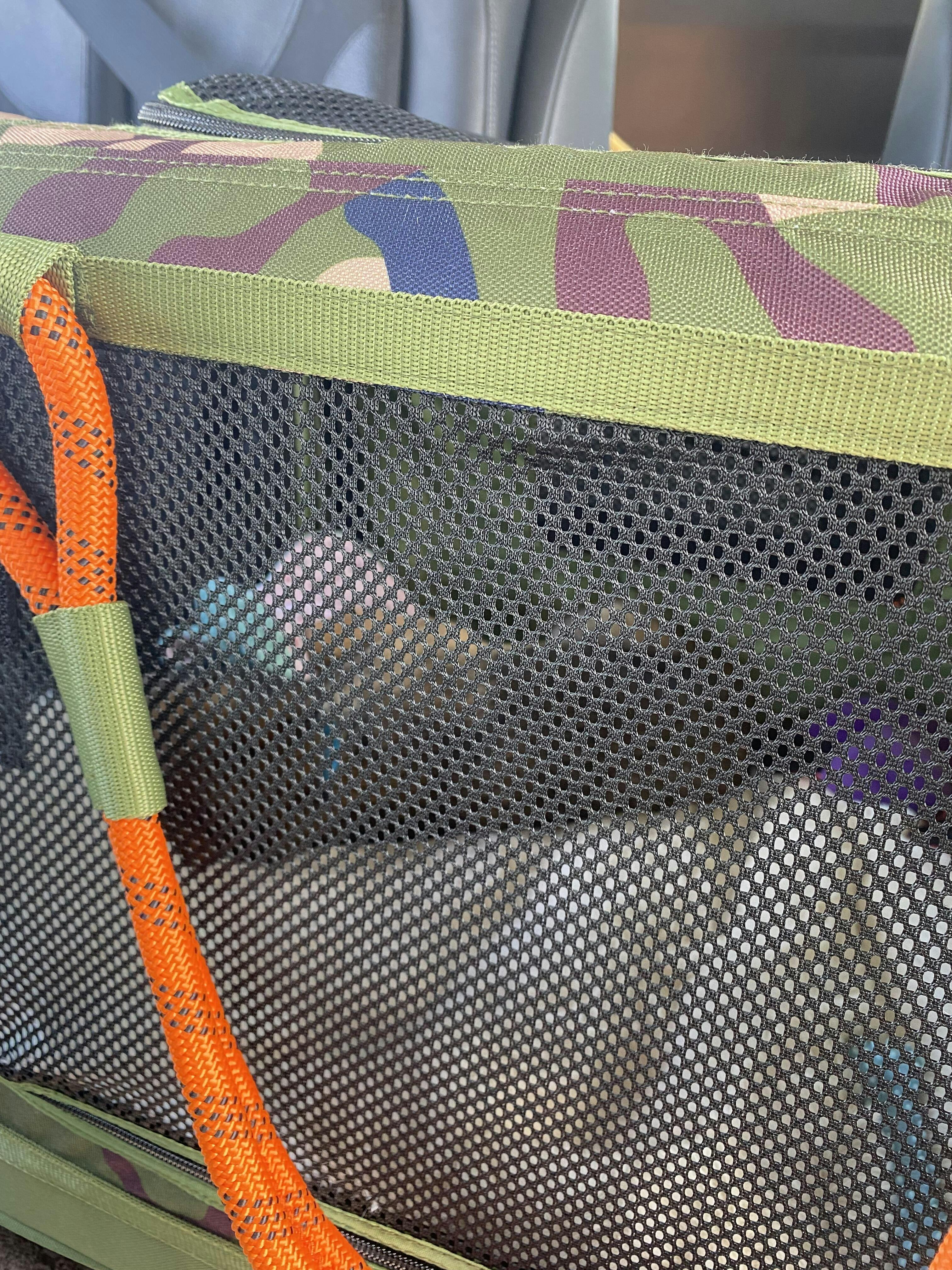 - Multiple Entry Points: Front, top, and side openings feature locking zippers to keep your pet safely contained. Plus, velcro fasteners hold side openings in place when rolled up.